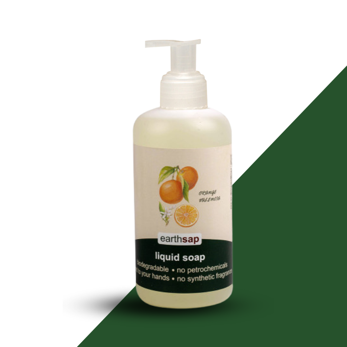 Liquid Soap - Orange Valencia. 100% natural and effective, non-toxic, child friendly, biodegradable and kind to your skin laundry powder with a refreshing scent.